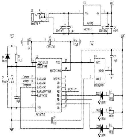 因此,設計良好的充電器應具有溫度檢測功能并能夠根據(jù)不同的環(huán)境溫度調整充電過程中的各轉換電壓值;同時,充電器還應具備溫度保護功能,在充電過程中,當蓄電池溫度超出限定的溫度范圍時充電器應立即停止充電或進入涓流充電,并且PIC16C712應點亮故障指示燈以提示用戶出現(xiàn)何種異常。