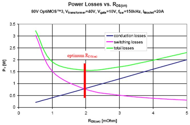 圖3. 功耗與RDS(on)值的關(guān)系