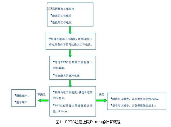 首先要確認(rèn)PPTC的阻值上限R1max。下圖1為PPTC阻值上限R1max的設(shè)計流程。