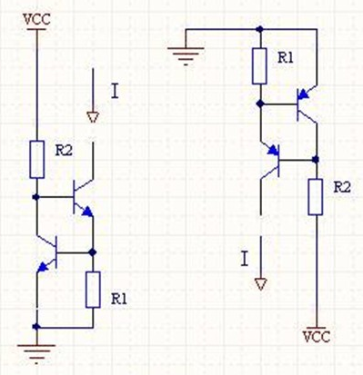用兩個(gè)晶體三極管,也可以構(gòu)成一個(gè)恒流源(圖6)。