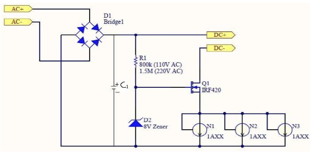 圖10. 采用恒流二極管作為L(zhǎng)ED驅(qū)動(dòng)電源