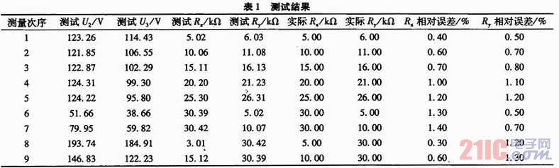 由1~5組可知,當絕緣電阻大時,測試相對誤差略有增大,這是因為采樣A/D的輸入阻抗較小,因此當測試電阻較大時造成誤差相對大些。另外,當負母線的絕緣電阻<30 kΩ、負母線絕緣電阻正常時,前者的測量效果差些。因為此時實際測得的電壓U2和U3都較小,A/D采樣的相對誤差大一些,所以電阻的誤差也大一些。不過遠好于平衡橋法無法發(fā)現(xiàn)兩點接地的情況,可以正卻發(fā)現(xiàn)接地。絕緣檢測的環(huán)境下,只要絕緣電阻>20 kΩ即認為絕緣良好,因此對于絕緣檢測的應(yīng)用環(huán)境,本系統(tǒng)能夠比較精確的測試各路的絕緣電阻,完全滿足應(yīng)用環(huán)境的需要。