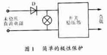 直流開關(guān)穩(wěn)壓器的輸入一般都是未穩(wěn)壓直流電源。由于操作失誤或者意外情況會(huì)將其極性接錯(cuò),將損壞開關(guān)穩(wěn)壓電源。極性保護(hù)的目的,就是使開關(guān)穩(wěn)壓器僅當(dāng)以正確的極性接上未穩(wěn)壓直流電源時(shí)才能工作。利用單向?qū)ǖ钠骷梢詫?shí)現(xiàn)電源的極性保護(hù)。最簡(jiǎn)單的極性保護(hù)電路如圖1所示。由于二極管D要流過開關(guān)穩(wěn)壓器的輸入總電流,因此這種電路應(yīng)用在小功率的開關(guān)穩(wěn)壓器上比較合適。在較大功率的場(chǎng)合,則把極性保護(hù)電路作為程序保護(hù)中的一個(gè)環(huán)節(jié),可以省去極性保護(hù)所需的大功率二極管,功耗也將減小。