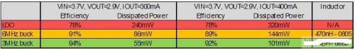 雖然選擇一個(gè)降壓轉(zhuǎn)換器來取代LDO似乎意義不大,但考慮到降壓轉(zhuǎn)換器必須能在極高占空比下工作,這就變得十分重要了。如果降壓轉(zhuǎn)換器的輸出設(shè)定為2.9V,電池電壓低到3.3V,降壓轉(zhuǎn)換器在88%的占空比下工作。在某些負(fù)載和輸入電壓條件下,降壓轉(zhuǎn)換器甚至?xí)黄韧V归_關(guān),并在100%占空比下工作。若手機(jī)開始發(fā)射GSM脈沖,在低電池電壓(VVBAT)情況下,這種情形會(huì)變得更加嚴(yán)重。GSM脈沖可能高至2A,而且在這些脈沖期間,鋰離子電池的輸出阻抗會(huì)使電池電壓下降400mV。對LDO而言,