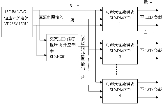而且這種恒壓和恒流分開的方案的最大優(yōu)點是可以插入程序調光系統(tǒng)。這樣可以進一步節(jié)約電能40%以上,這是任何直接恒流輸出方案所無法實現的。