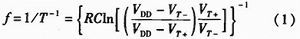 全橋DC-DC電源參數(shù)為:輸入+15 V;輸出+15 V、-10 V;輸出功率6 W;工作頻率360 kHz。要求額定負(fù)載下動(dòng)態(tài)特性、滿足:+15 V波動(dòng)<+1 V;-10 V波動(dòng)<-2V;工作頻率滿足5%的偏差容限。其中工作頻率由施密特觸發(fā)器CD40106參數(shù)及RC數(shù)值決定。具體參數(shù)為:R=2.2kΩ;C=748 pF;VDD=15 V;VT+=8.8 V;VT-=5.8 V。根據(jù)式(1)計(jì)算出振蕩頻率為748.792 kHz,因?yàn)樵O(shè)計(jì)中多諧振蕩器輸出對(duì)2路RC充放電,充電電容容量增大一倍,因此振蕩頻率為上述計(jì)算頻率的1/2,即374.396kHz。