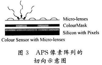 APS具有低讀出噪聲和高讀出速率等優(yōu)點(diǎn),但像素單元結(jié)構(gòu)復(fù)雜,填充系數(shù)降低,填充系數(shù)一般只有20%~30%。為了提高像素的填充系數(shù),APS在像素的上方設(shè)置了微透鏡(Micro-lenses),如圖3所示。
