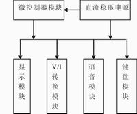 本設(shè)計(jì)采用單片機(jī)作為主要控制部件,通過(guò)鍵盤(pán)預(yù)置輸出電流值并采用液晶模塊實(shí)時(shí)顯示。整個(gè)系統(tǒng)硬件部分由微控制器、電壓-電流轉(zhuǎn)換、鍵盤(pán)、顯示、直流穩(wěn)壓電源和語(yǔ)音提示等模塊組成。系統(tǒng)組成框圖如圖1所示。