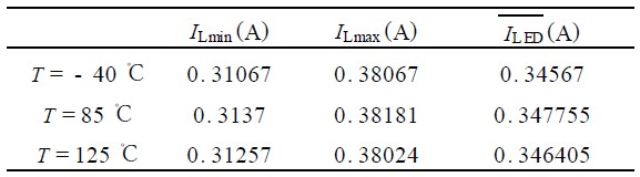 表2 Vin = 12V 情況下三種環(huán)境溫度下的驅動電流