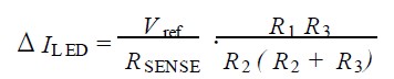 由于系統(tǒng)的固定延時τ對電流的紋波存在影響,實際的驅動電流峰值是IMAX +τoff di/ dt , 電流谷值是IMIN - τON di/ dt ,τoff 為從驅動電流大于設定值到功率開關關閉的系統(tǒng)延時,τon 為從驅動電流小于設定值到功率開關導通的系統(tǒng)延時, di/ dt 是電感電流變化率。 則電感若取較大值,對驅動電流平均值影響不大,但可以減小電流紋波, 反之,這是以增加外部電感體積為代價的。