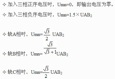 按負(fù)序過濾器的工作原理,從上述公式中,可得出,在標(biāo)準(zhǔn)電壓輸入下,可以計(jì)算出相關(guān)輸出電壓Umn值,見表1