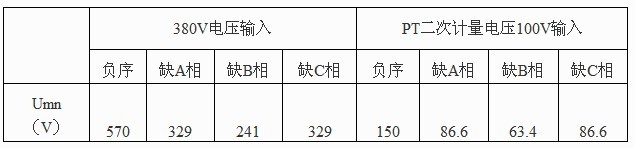 從表中可發(fā)現(xiàn),380V電壓回路發(fā)生反相序接線時(shí),Umn輸出電壓量最大;PT二次計(jì)量電壓回路發(fā)生B相缺相時(shí),Umn輸出電壓最小。