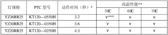 針對以上問題,上海科特高分子材料有限公司開發(fā)出KT120-H 系列電子鎮(zhèn)流器專用PTC 熱敏電阻,克服了上述缺陷,能很好解決鎮(zhèn)流器的異常狀態(tài)保護問題。