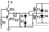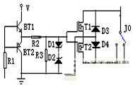 關互補電路實際上是繼電器的一個旁通電子開關,采用兩只IGBT、兩只二極管構成的交流通路,是互補式交流穩(wěn)壓器的主要技術點,電路如圖3: