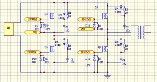 在開關(guān)管承受峰值電流和電壓的情況下,全橋輸出功率為半橋的兩倍,并切在功率大于500W時,全橋相對于半橋更合適,故本次設(shè)計采用全橋拓?fù)洹?br />