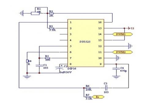 本設(shè)計采用的電源核心控制部分的芯片為美國通用公司芯片SG3525.控制電路如圖: