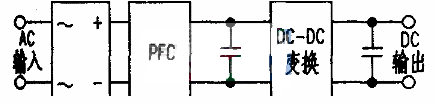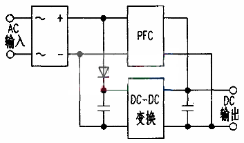 傳統(tǒng)的開(kāi)關(guān)電源結(jié)構(gòu)如下圖,是將功率因數(shù)校正電路(PFC,PowerFactorCorrection)和DC-DC變換電路串聯(lián)起來(lái)。因而效率低,要減少待機(jī)功率也相當(dāng)困難。