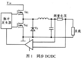 Vin為輸入電壓,VM1、VM2為MOSFET,VM1導通寬度決定輸出電壓大小,快恢復二極管和VM2共同續(xù)流電路,整流管的導通損耗占據(jù)最主要的部分,因此它的選擇至關(guān)重要,試驗中選用通態(tài)電阻很低的M0SFET。電感、電容組成濾波電路。測量電阻兩端電壓與給定值比較后,通過脈沖發(fā)生器產(chǎn)生相應的脈寬,保持負載電流穩(wěn)定。VM1關(guān)斷,快恢復二極管工作,快恢復二極管通態(tài)損耗大,VM2接著開通續(xù)流,減少系統(tǒng)損耗。