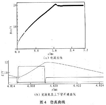 圖3中,R1,R2為電壓測量電阻,Rc為電流測量電阻。調(diào)節(jié)R1可以設(shè)定最大輸出電壓。Rc限制最大輸出電流。當最大電壓或電流其中一個達到給定值,則脈沖寬度最大。這樣可以保證負載正常工作。