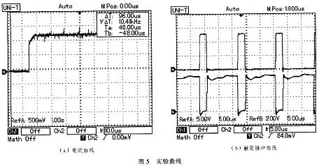 實驗曲線如圖5所示,實驗數(shù)據(jù)為輸入電壓12 V,輸出電壓2 V左右,測量電阻0.0025 Ω,最大輸出電流20 A。
