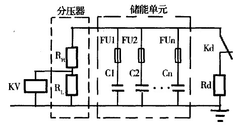 脈沖電容器儲能后,由控制電路發(fā)送命令進(jìn)行觸發(fā)放電(ETcG發(fā)射)。ETCG發(fā)射精度和一致性與PPS儲能量密切相關(guān),電容器儲能大小與其充電電壓的量值平方成正比,因此控制電路必須能精確控制充電電壓量值,這可以通過與被充電容器組并聯(lián)"分壓器一電壓繼電器組"來實現(xiàn),見圖2。