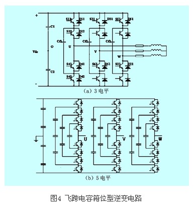 1992年,t·a·maynard和h·foch提出了如圖4(a)所示結(jié)構(gòu)的飛跨電容箝位型逆變電路,其特點(diǎn)是用箝位電容代替圖3中所述的箝位二極管,直流側(cè)電容不變,其工作原理與二極管箝位型逆變器相似。