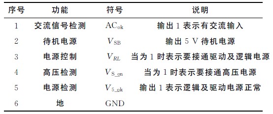 控制電源與數(shù)字電路CPU 通過6針端子相連,如表2所示。