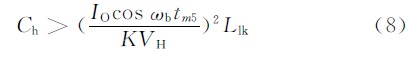 所以Ch的大小要滿足式(8),但Ch過大又增加了給Ch充電的環(huán)流,而且Ch要保證在原邊向副邊傳送能量結(jié)束之前充電結(jié)束。所以Ch應(yīng)該在保證零電流開關(guān)情況下盡可能小。