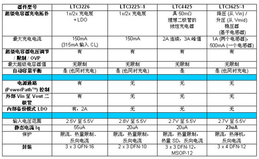 表 2:凌力爾特超級(jí)電容器充電器的比較