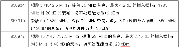 TriQuint公司的新型射頻聲表面波濾波器的技術(shù)細節(jié)速覽表