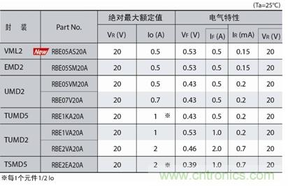 業(yè)界頂級的低VF,以小型封裝可確保大電流。