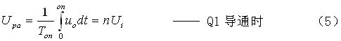 在圖6-b中,Upa為變壓器初級(jí)線(xiàn)圈正激輸出電壓的半波平均值,此值與輸入電壓相等;Upa-為變壓器初級(jí)線(xiàn)圈反激輸出電壓的半波平均值,此值與占空比相關(guān);當(dāng)占空比等于0.5時(shí),Upa-與輸入電壓在數(shù)值上相等,但符號(hào)相反。