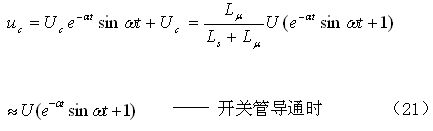 我們從(21)式以及圖3和圖4可以看出:當(dāng)電源開關(guān)管Q1導(dǎo)通時(shí),分布電容Cs兩端電壓(也是勵(lì)磁電感l(wèi)v兩端的電壓),由一個(gè)最大振幅約等于輸入電壓U的正弦振蕩電壓與一個(gè)分布電容Cs兩端電壓的半波平均值