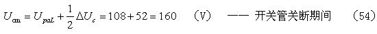當考慮電阻R對電容器C充電的分流作用,以及開關管由導通到完全關斷期間,漏極電流對電容器C充電的分流作用時,根據(36)式,假設分流系數r = 0.5 ,則(52)式還可改寫為: