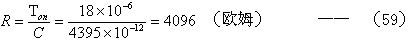 把由(52)和(53)式求出電容器C的結果,以及根據(25)式求出的Ton值,代入(57)式后即可求出電阻R的值。