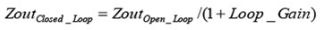 圖1以圖形方式說明了上述關(guān)系,兩種阻抗均以dB-Ω或20*log [Z] 為單位。在開環(huán)曲線上的低頻率區(qū)域內(nèi),輸出阻抗取決于輸出電感阻抗和電感。當(dāng)輸 出電容和電感發(fā)生諧振時(shí),形成峰值。高頻阻抗取決于電容輸出濾波器特性、等效串聯(lián)電阻 (ESR) 以及等效串聯(lián)電感 (ESL)。將開環(huán)阻抗除以1加環(huán)路增益 即可計(jì)算得出閉環(huán)輸出阻抗。