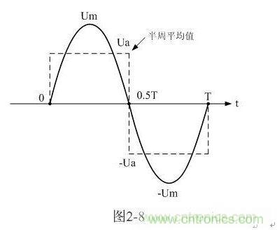 順便說明,這里的半周平均值,并不是一般意義上的正、負(fù)半周波形完全對(duì)稱交流電壓正半周、或負(fù)半周的平均值,這里的半周平均值是泛指整個(gè)周期中的正半波電壓或負(fù)半波電壓在半個(gè)周時(shí)間內(nèi)的平均值。如圖2-9所示。另外,(2-19)、(2-20)式中的半周平均值Ua和Ua-與第一章中(1-70)、(1-71)式定義的半波平均值Upa和Upa-也稍有一點(diǎn)差別,Ua和Ua-與Upa和Upa-的差別,主要是在分母上。