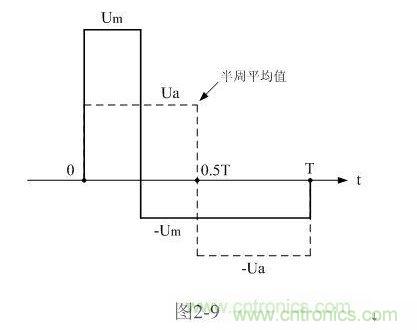 這種計(jì)算方法,對(duì)于非正弦波同樣有效。圖2-9是一個(gè)正、負(fù)脈沖幅度以及脈沖寬度均不相等的交流脈沖波形,我們同樣可以用分別計(jì)算它們正、負(fù)半周平均值Ua、-Ua的方法,然后用平均值Ua替代(2-17)或(2-18)式中的矩形脈沖幅度E 。