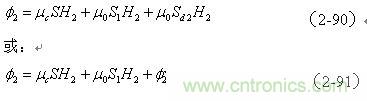 (2-91)式中,咋看起來,變壓器初級線圈N1產(chǎn)生的磁通量 全部穿過變壓器次級線圈N2,它們之間應該不存在漏磁通;但是,初級線圈在面積S1中產(chǎn)生的磁通