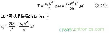 如果我們拿(2-94)式與(2-62)式或(2-89)式進行對比,可以看出,線圈漏感與線圈的電感是沒有本質(zhì)區(qū)別的,只是磁路和磁感應強度以及介質(zhì)導磁率等參數(shù)需要根據(jù)實際情況來決定。