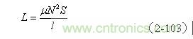 【說明】上式是用來計算變壓器線圈電感的計算公式。由于變壓器鐵芯的磁回路基本是封閉的,變壓器鐵芯的平均導(dǎo)磁率相對來說比較大。鐵芯的導(dǎo)磁率一般在產(chǎn)品技術(shù)手冊中都會給出,但由于大多數(shù)開關(guān)變壓器的鐵芯都留有氣隙,留有氣隙的磁回路會出現(xiàn)磁場強度以及磁感應(yīng)強度分布不均勻,因此,(2-103)式中的導(dǎo)磁率只能使用平均導(dǎo)磁率,技術(shù)手冊中的數(shù)據(jù)不能直接使用。