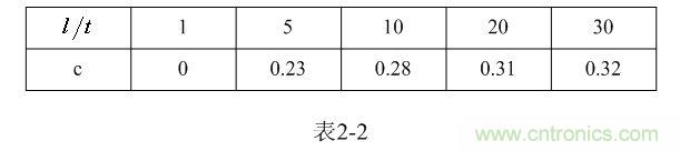 【說明】上式是用來計算多層線圈繞組、截面為圓形的空心線圈的電感計算公式。長岡系數(shù)k可查閱表2-1,系數(shù)c可查閱表2-2。當(dāng)線圈內(nèi)部有鐵芯時,有鐵芯線圈的電感是空心線圈電感的