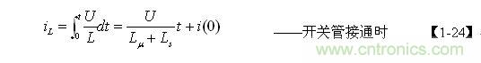 假設(shè)變壓器初級(jí)線圈的等效電感為L(zhǎng),L=Lu+Ls ,當(dāng)電源開關(guān)管Q1接通時(shí),流過變壓器初級(jí)線圈的電流為: