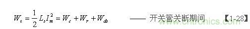【1-28】式中,Wc 為電源開關(guān)管由導(dǎo)通到完全關(guān)斷期間電容器C儲(chǔ)存的能量, Wr為電源開關(guān)管由導(dǎo)通到完全關(guān)斷期間電阻R損耗的能量,Wds 為電源開關(guān)管由導(dǎo)通到完全關(guān)斷期間漏極電流(逐步減?。?duì)電容器C充電產(chǎn)生分流作用所做的功。