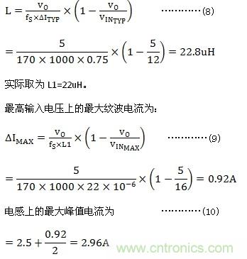 用NCV8852設(shè)計(jì)USB電源,輸入電壓范圍VIN=5.7~16V,典型值VIN_TYP=12V, 輸出電壓VO =5V, 輸出電流IO=2.5A, 工作頻率fs=170kHz.