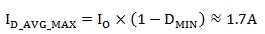 續(xù)流二極管上的最大反向壓降為VINMAX ,流過二極管的最大峰值電流為2.96A, 流過二極管的最大平均電流為