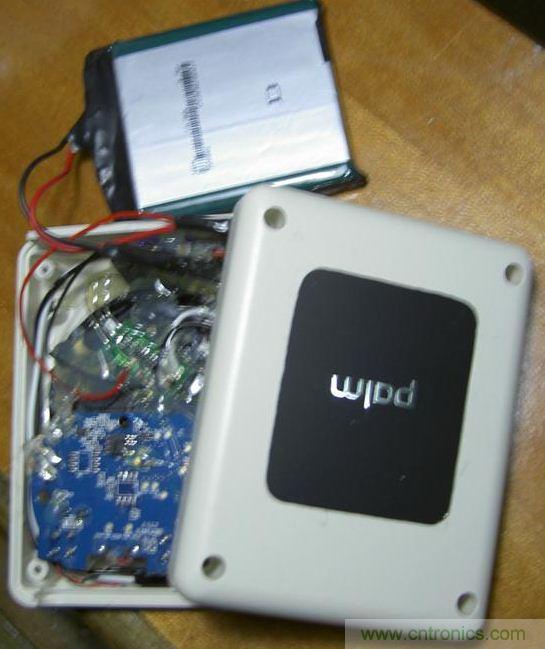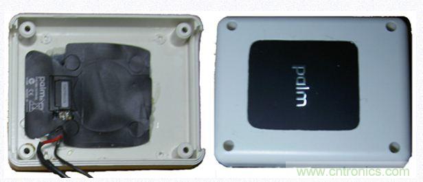 由于點(diǎn)金石表面是有一定凹陷下去的,非常契合palm的后蓋,而這個(gè)凹陷實(shí)在難以加工。另外,點(diǎn)金石里那圈非常細(xì)的線圈也是用膠水粘在外殼上的,比較難取下來(lái)。而且點(diǎn)金石上那個(gè)“plam”的金屬字也比較酷,因此于是我決定將點(diǎn)金石嵌入到移動(dòng)電源中。