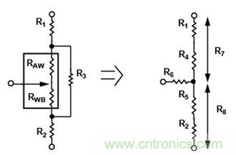 使用串并聯(lián)組合對電位計進(jìn)行線性化可能十分復(fù)雜,如圖10中的等效電路所示。