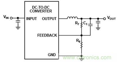 圖1:開關(guān)電源電壓控制環(huán)路的反饋網(wǎng)絡(luò)采用兩個電阻