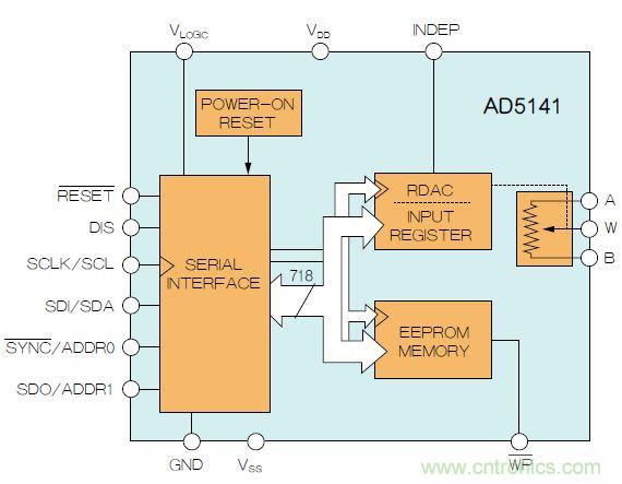 ADI公司的AD5141 digiPOT克服了其他數(shù)字電位計的某些問題。它提供: